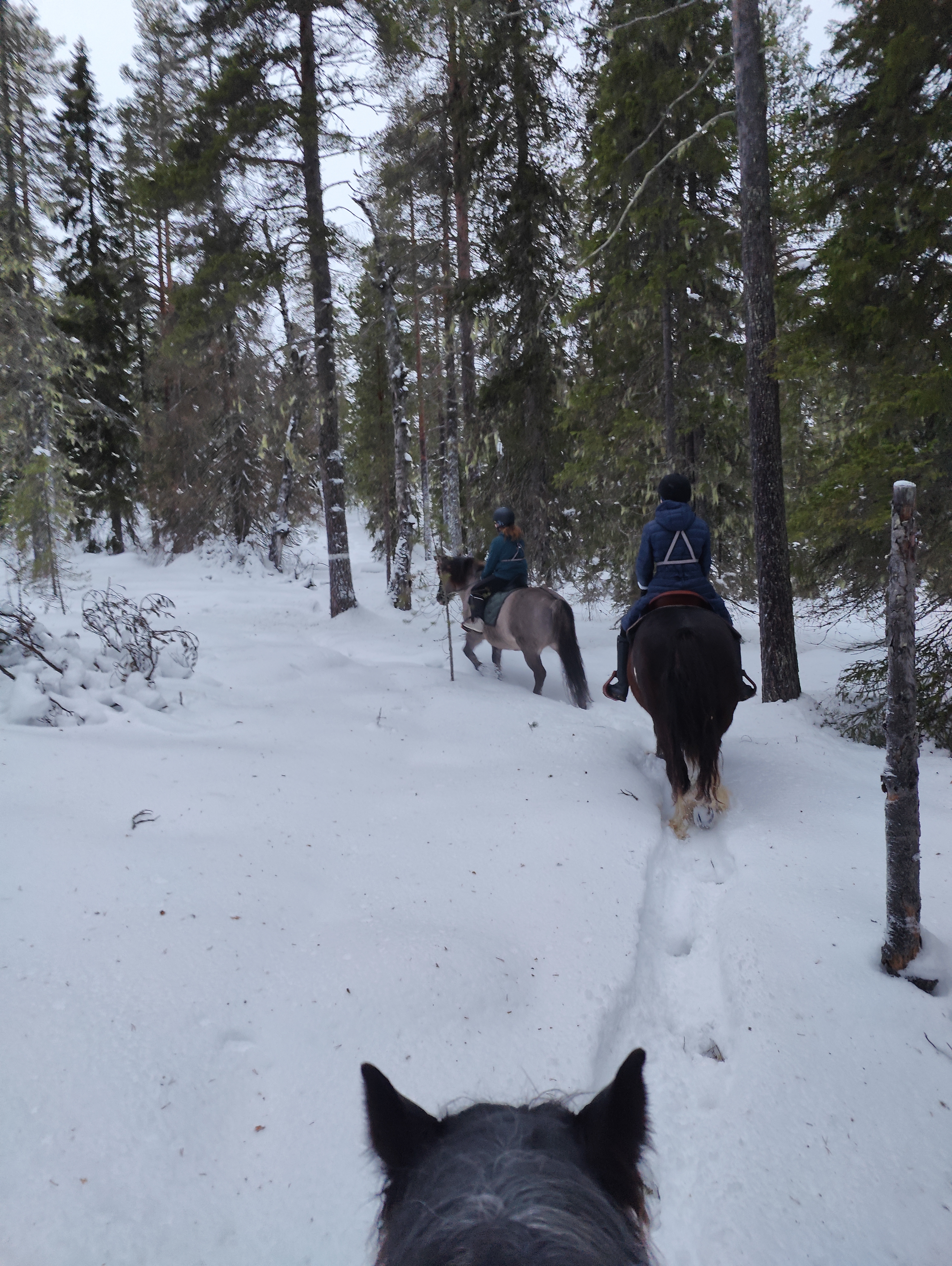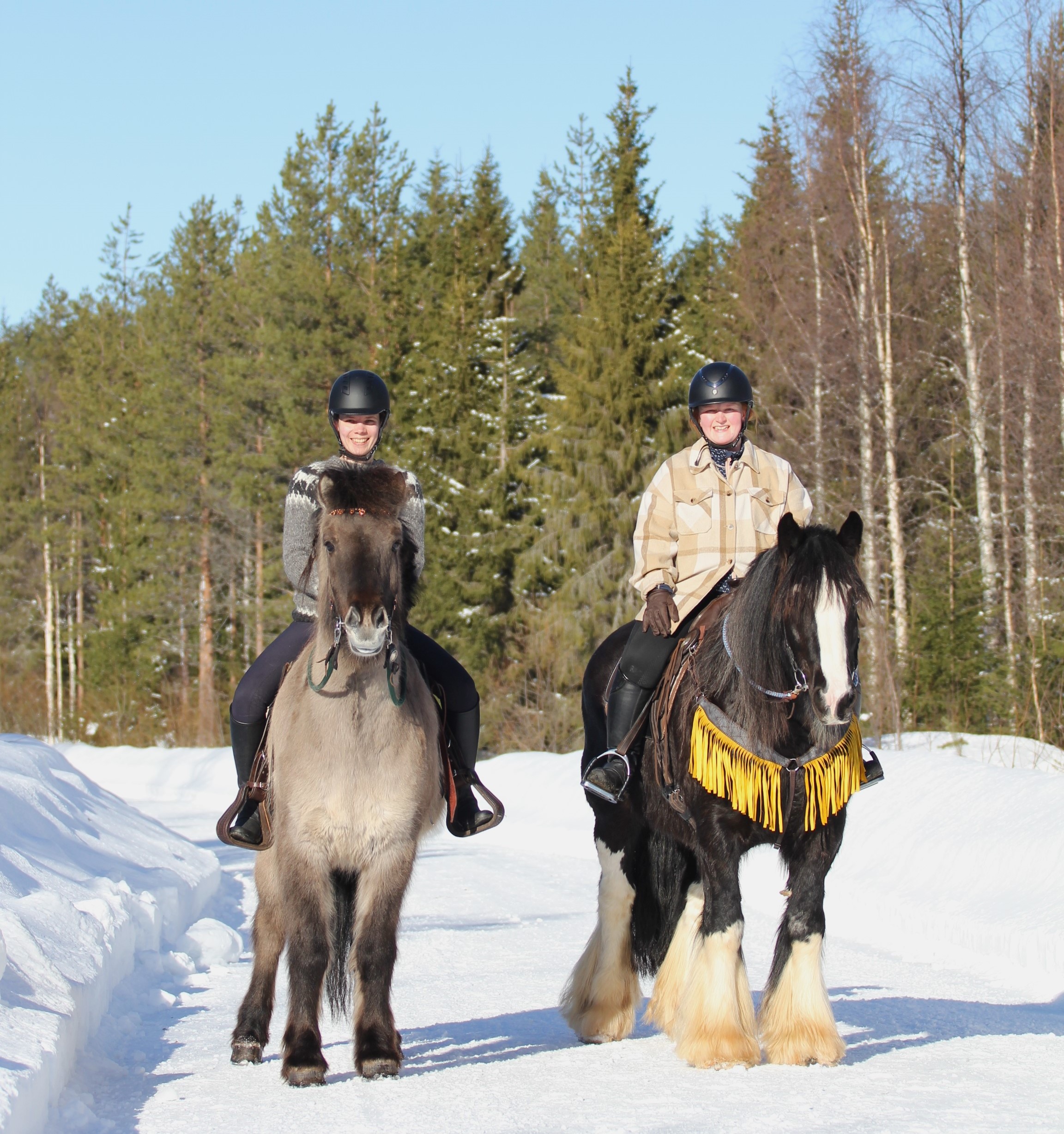 The horseback riding tour includes a guide and a helmet. We do not lend winter clothing, but we can offer advice on where to get the necessary gear. Ponies are waiting for you, ready. However, please reserve about half an hour of extra time in addition to the ride.